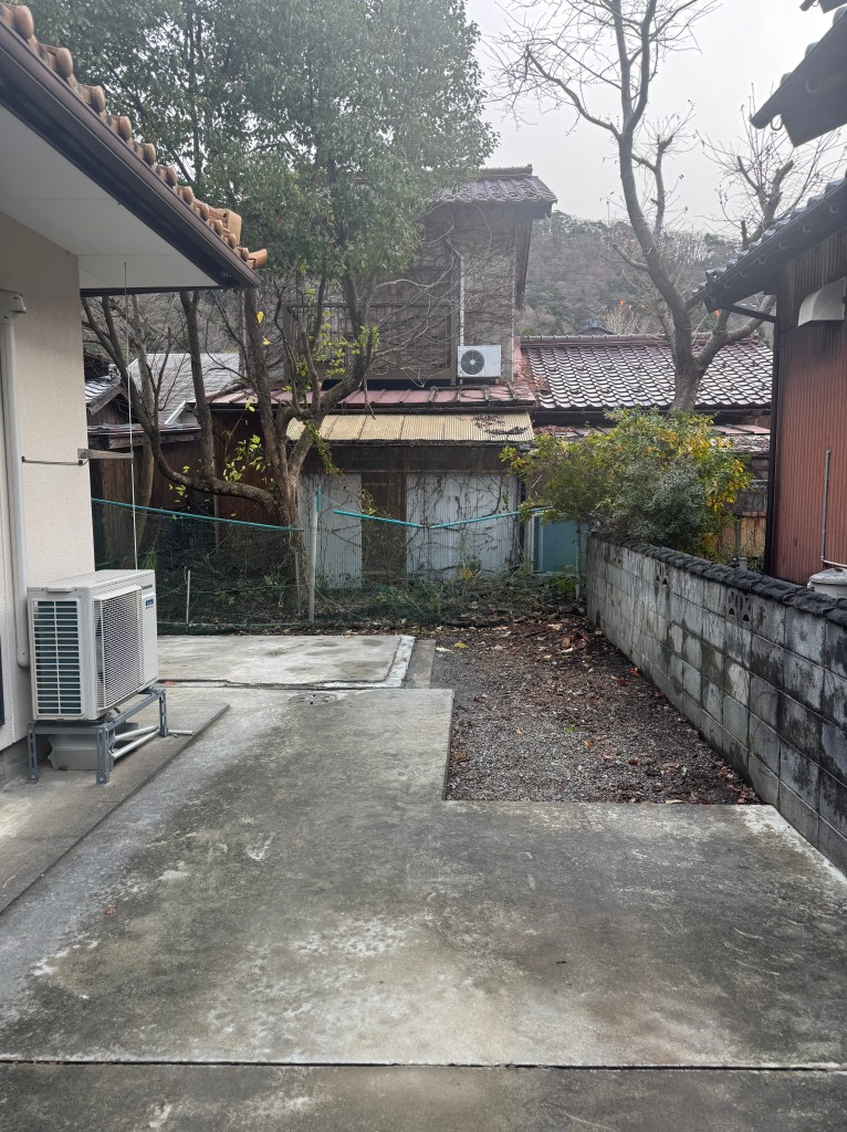 解体後はかなりすっきりとし、奥の家屋も丸見えの状態になりました。今年は天候の具合でここまで。年明けにコンクリートを打ち直し、物置設置となります。